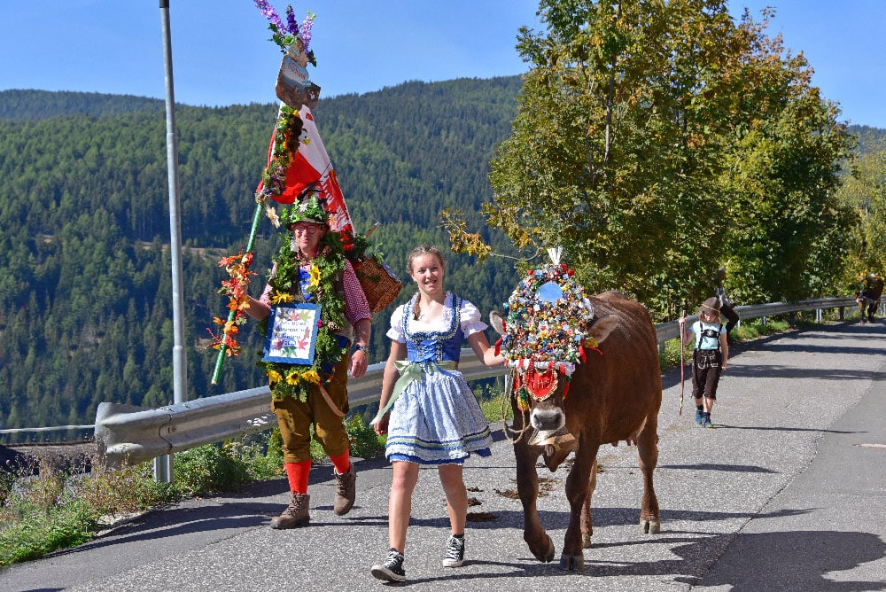 Nach einem genussvollen Frühstück fahren Sie durch das Pustertal bis nach Mühlbach und zweigen anschließend nach Meransen ab. In diesem sonnendurchfluteten Bergdorf auf 1.400 Metern Höhe erwartet Sie eine prächtige Aussicht auf die umliegende Bergwelt. Ländliche Tradition und gelebtes Brauchtum werden Ihnen bei dieser besonderen Veranstaltung eindrucksvoll nähergebracht. Für stimmungsvolle Unterhaltung sorgen verschiedene musikalische Darbietungen – vor, während und nach dem feierlichen Einzug des Almabtriebs. Festlich geschmückte Kühe, Pferde und Kleinvieh ziehen gemeinsam mit ihren Betreuern, den Sennerinnen und Sennern, in das Dorf ein. Am Festplatz wird zudem bäuerliches Handwerk präsentiert und altes Brauchtum lebendig gehalten. Ein Highlight ist der Auftritt von Alexander Rier, der mit seinen stimmungsvollen Liedern und seiner mitreißenden Bühnenpräsenz für beste Unterhaltung und echte Südtiroler Festatmosphäre sorgt.