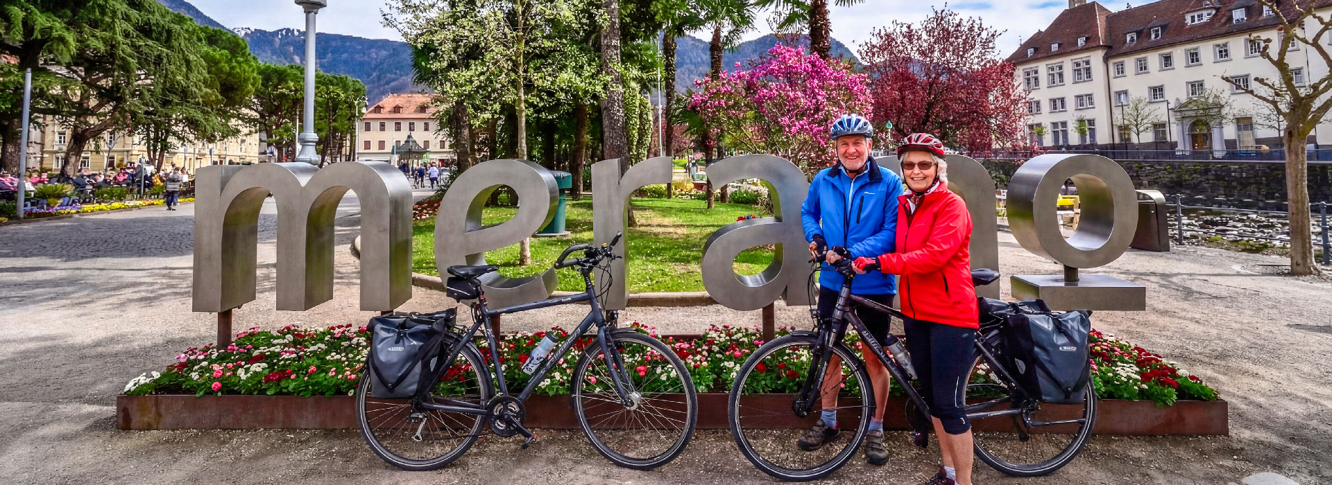 Die Tour beginnt mit einer Busfahrt zum Sandwirt in St. Leonhard, dem Geburtshaus des Freiheitskämpfers Andreas Hofer. Von dort starten Sie mit dem Rad entlang grüner Wiesen und Apfelplantagen, begleitet vom Plätschern der Passer, bis in die Kurstadt Meran. Hier haben Sie Zeit, die Stadt auf eigene Faust zu erkunden und sich zu stärken. Anschließend führt die Route auf dem Apfelradweg, Teil der historischen Via Claudia Augusta, entlang der Etsch bis nach Frangart, wo Ihr Bus für die Rückfahrt bereitsteht.