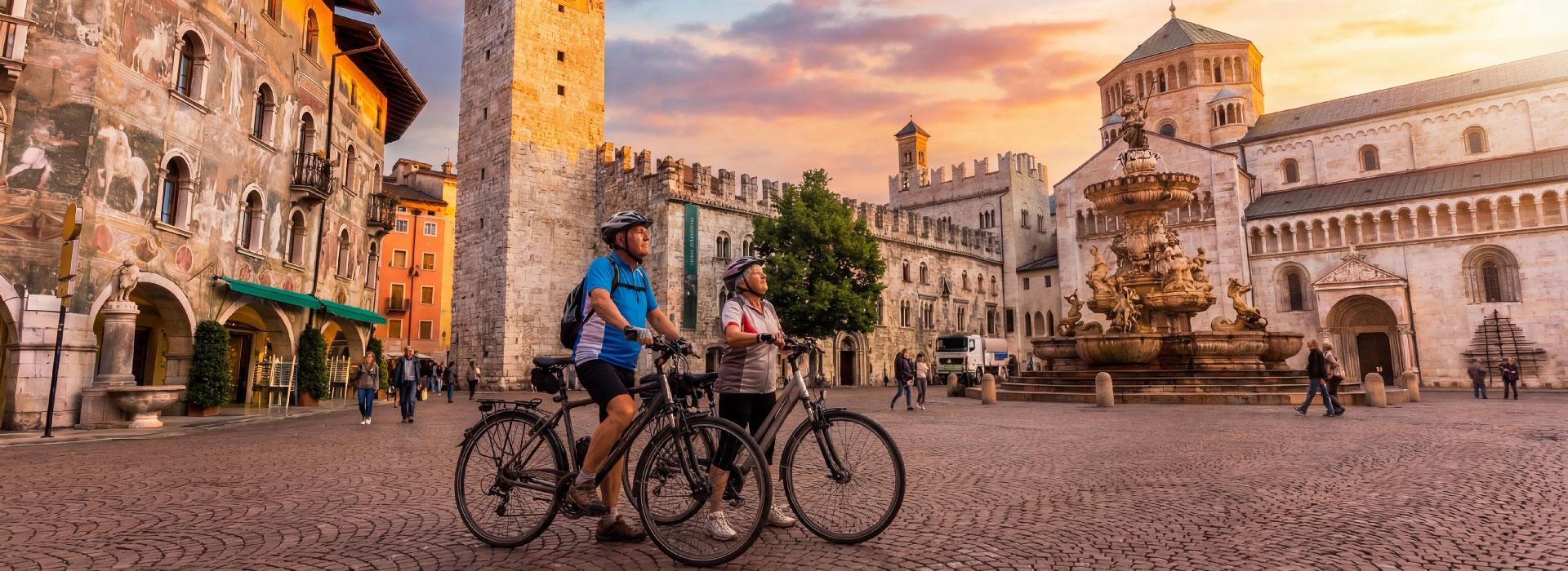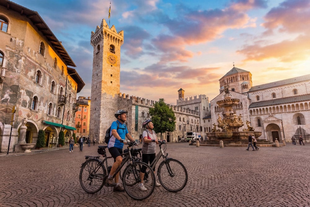 Die Tour startet in Frangart und führt entlang der Etsch über Auer und Neumarkt bis nach Salurn – der Grenze Südtirols und dem Ende des deutschen Sprachraums an der Salurner Klause. Anschließend verläuft die Strecke weiter entlang des Flusses über Lavis bis in die historische Stadt Trient. Nach der Ankunft bleibt Zeit, die charmante Altstadt von Trient auf eigene Faust zu erkunden und durch die Geschäfte zu bummeln.
